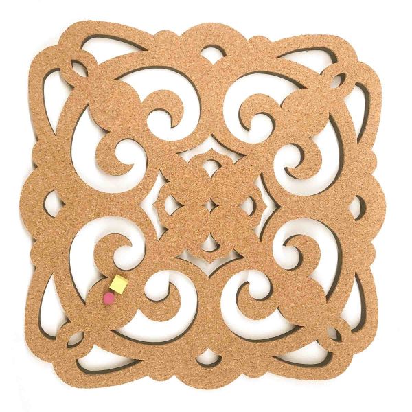 The hollow carved decorative cork boards are made of eco, sustainable, food grade, durable, natural dense cork material with the size of 12"x12". Due to the high density board material, sturdy back side, push pins or darts will not go through your boards or damage your walls. Self-healing after each use, natural cork finish prevents pinholes, which creates long lasting use. The cork boards look lovely, strong decorative, and very functional in kitchen, office, kindergarten, school, children's room, home and other places. Also perfect for DIY project. We can supply hollow-carved cork board with different cork texture in front of cork surface, like with gold/silver flecks or threads, colorized flecks, etc.